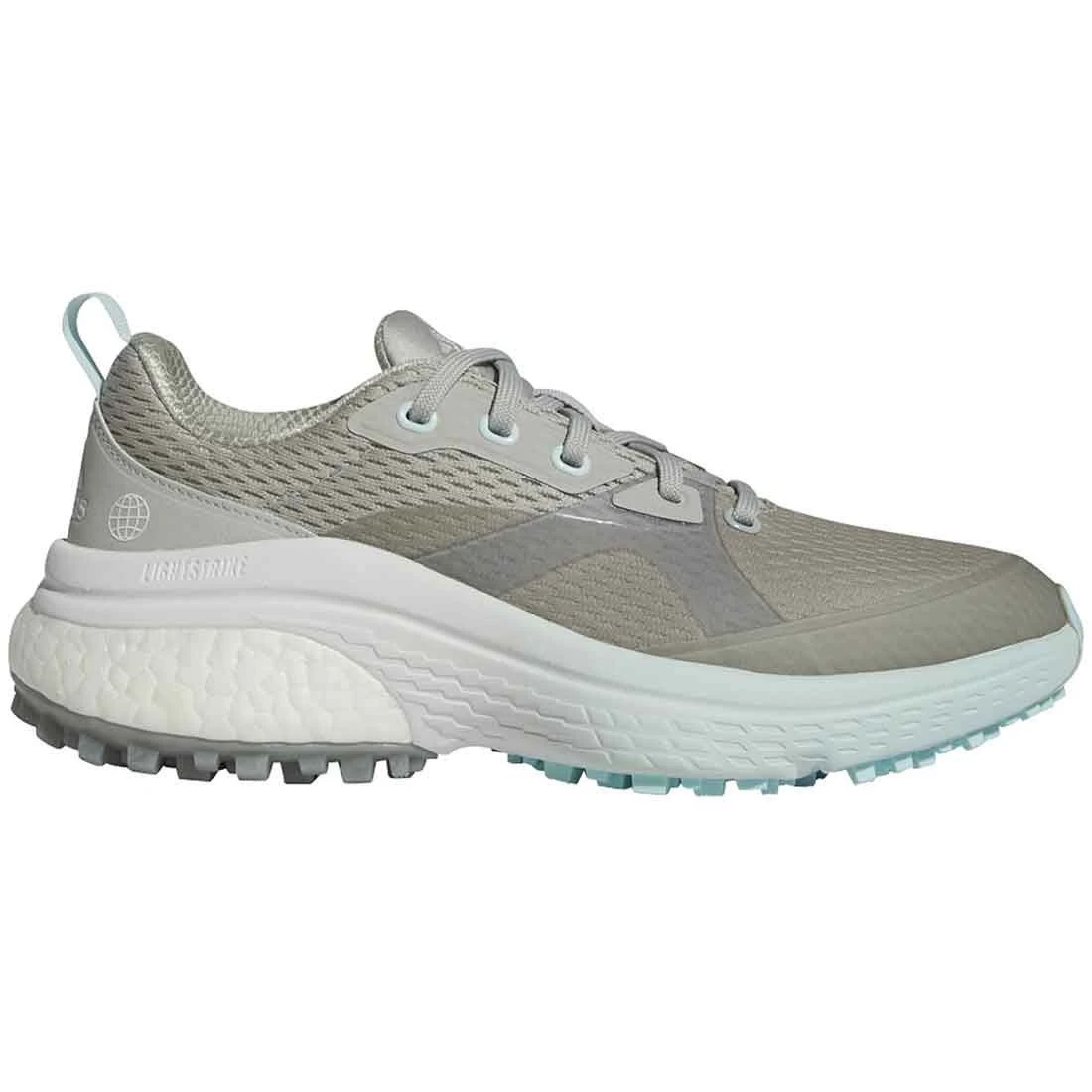 Long summer days are meant to be spent on the course. Walk your rounds without ever thinking about your feet in the adidas Solarmotion spikeless golf shoes. A hybrid BOOST and Lightstrike midsole combines energy return with a super-light feel to keep you feeling fresh and focused through a full 18 holes and beyond. The secure, grounded feel of the Gripmore outsole lets you swing with confidence and transition to the clubhouse with ease. A breathable mesh upper keeps the air flowing and resists wet conditions for comfort that lets you focus on the game.