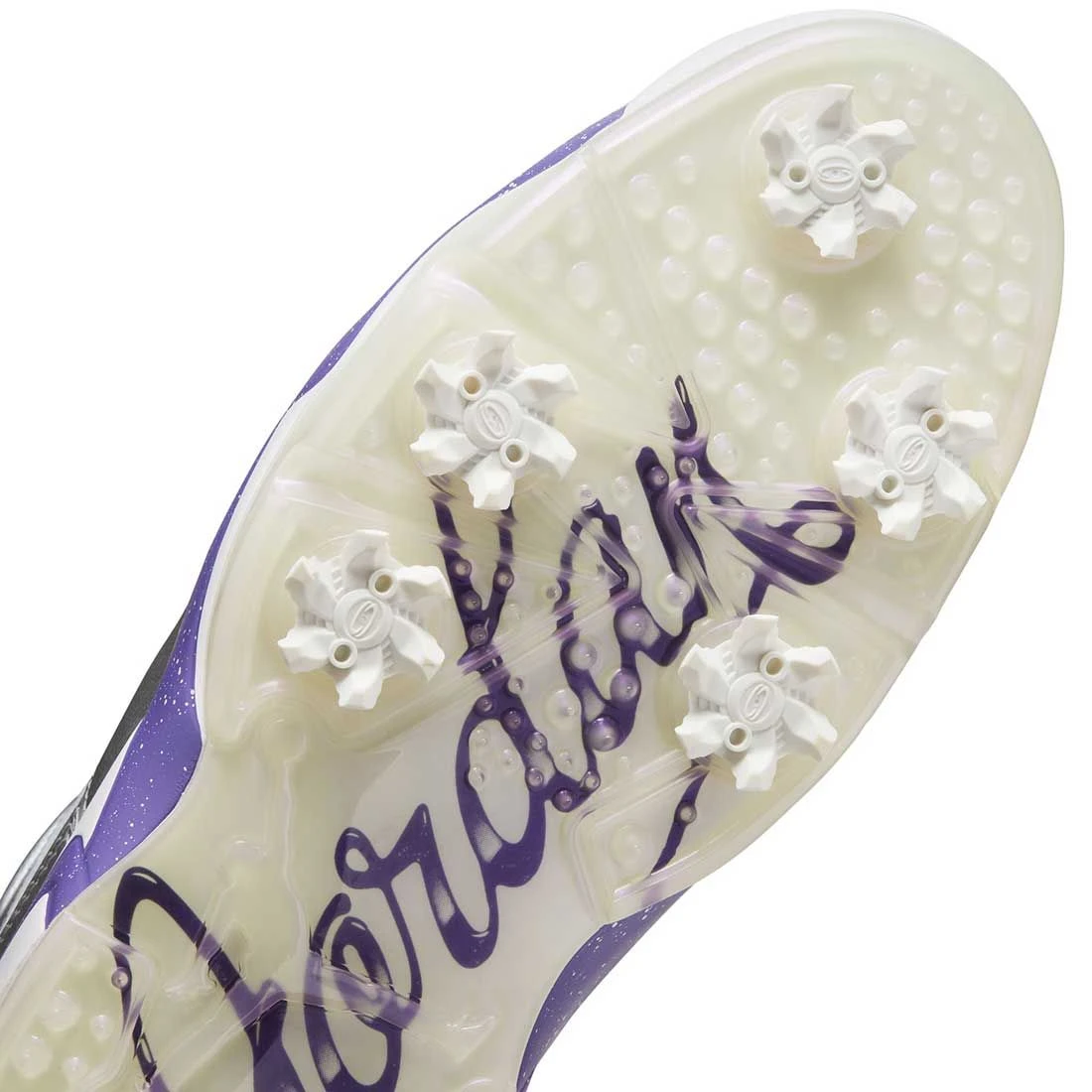 - Spikes on the outsole add grip and stability for the course.